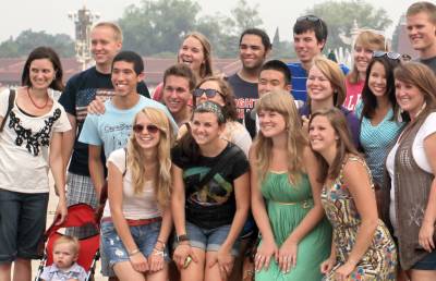 7月5日,一群外国人来到中国旅游,面对秀美的风光,他们开心的合影留念