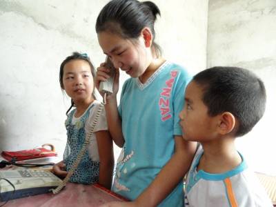 接爸妈的电话是姐弟们最开心的时刻,都抢着汇报今天自己干什么事情了,爸妈的一句表扬会让姐弟仨笑声一片。李培然说,最喜欢接爸妈的电话,爸妈总是嘱咐他们好好吃饭、好好学习、不要下田干活,最不喜欢接奶奶的电话,奶奶的电话里总是有干不完的农活。9岁的李晓慧说,暑假的生活有点单调,没有在学校里好,这几天她很想念爸爸妈妈,还有老师和同学。(视界网摄影师 高超)