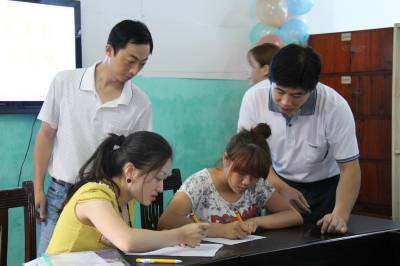 7月15日,建始县特殊教育学校毕业生(前右一)在老师指导下,与恩施晨龙精密制造有限公司填写递交用工报名表,毕业后就将走上就业岗位。