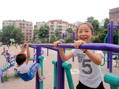 “妈妈你看,这个最好玩啦!”7月11日,湖北省郧县刘洞镇一贯制学校的王甜甜等孩子在郧县文化广场的户外健身设施间欢呼雀跃。暑假里不少在城区打工的爸妈们把孩子从乡下接进城市,孩子们对城市的一切都感到新奇。