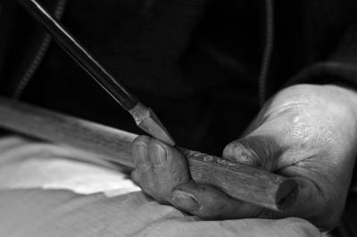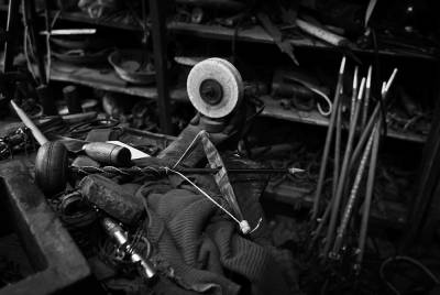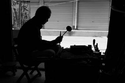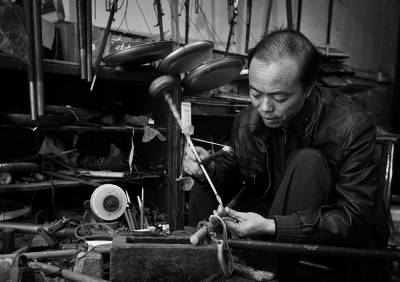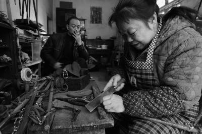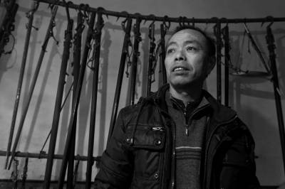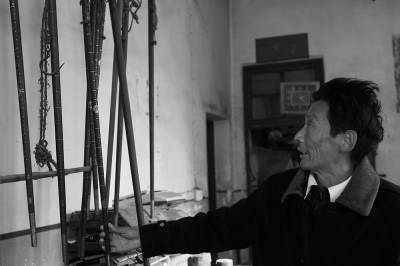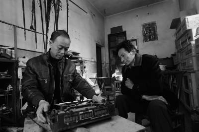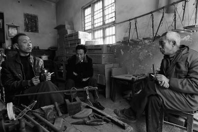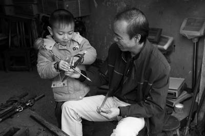 2010年11月,武汉市新洲区阳逻老街,老熊的秤铺。今年52岁的老熊十三四岁开始对父亲这门手艺感兴趣的,在父亲苛刻的专业要求下,肯动脑肯吃苦的熊世忠几年便学成了。上世纪八、九十年代适逢改革开放,市场繁荣,加上农村人家几乎家家必备,一时间全国杆秤的需求量在2.4亿杆左右。2000年后,他做的秤卖渐渐地少了,取而代之的是电子秤。20多块一杆手工秤每天卖不出二三杆,根本无法养活一个店和一家人,老熊只能靠销售、修理各种电子秤来维持老秤铺的生存。