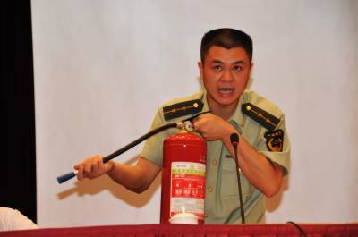 7月15日下午,十堰市郧县公安消防大队在郧县郧阳国际大洒店礼堂举办县内宾馆、饭店行业300多人参加的消防安全培训演练,学员们现场学习,观摩,实际操作灭活器灭火,以掌握灭火和逃生技能。 图为学员们正在演练灭火实战技能时的情景。 周家山 杨建华摄 郧县城管大队 电话13872840078 邮编442500
