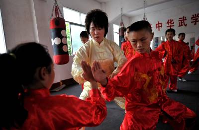 7月16日,吕红霖在纠正孩子们的武术动作。 今年37岁的吕红霖人称“功夫保姆”,2005年起,从武当山习武归来的她创办一所文武学校,先后为宣恩县农村700多名留守儿童筑起“爱的家园”,为孩子们的成长“保驾护航”。 据了解,宣恩县是一个山区劳务输出县,常年外出务工的青壮年达7万余人,农村留守儿童的管理、教育问题成为农民工群体关注的焦点。 (本报视界网 宋文 摄)
