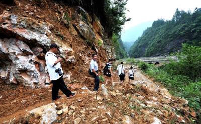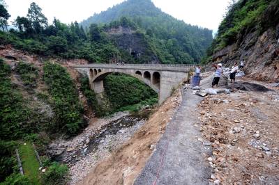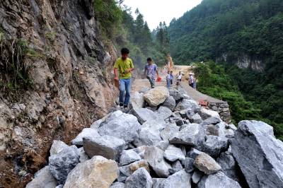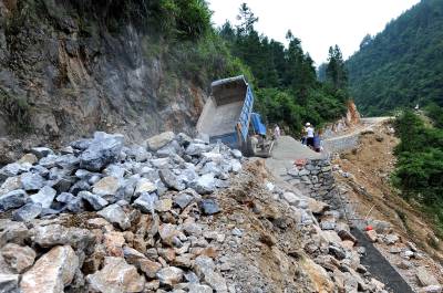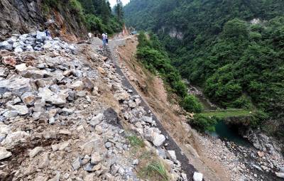 7月17日,宣恩县晓关乡杉水田村,一条通村公路艰难地向山里掘进。 山大人稀的恩施土家族苗族自治州自上世纪80年代末开始,在“要想富、先修路”的号召下,逢山开路遇水架桥,让“致富路”不断掘进深山。 到2010年底,全州公路通车里程达到17803.438公里,2512个行政村(含92个居委会)中,有1543 个行政村通了公路;973个行政村通油路(水泥路),380余万土家、苗族儿女初步告别出行难。(本报视界网 宋文 摄)