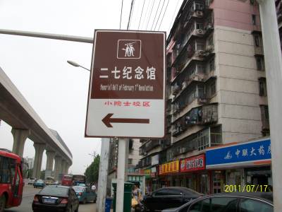 武汉为了纪念辛亥革命100周年,到处都在整治,而小院士如此写在二七纪念馆的指示牌上已有数月了,不知是小院士本身在二七纪念馆内还是有人写的指示牌上,二七纪念馆的工作人员和城管难道没看到吗?