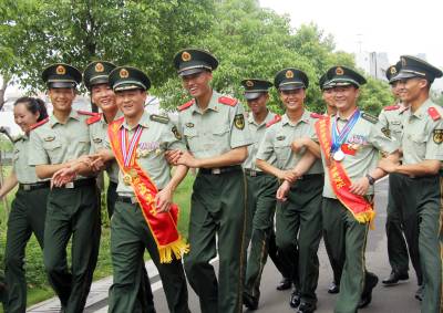 7月18日,刚刚参加完武警湖北省总队第三次党代表大会的王少杰和胡翔,被战士们拥簇着争相合影留念。两名标兵都来自武警湖北省总队一支队反劫机中队。王少杰曾获得武警部队特战比武突击专业综合第一名,今年入选首届“武警部队十大军事训练典型”,前不久又被评为第十四届“中国武警十大忠诚卫士”。胡翔被称为“狙击枪王”,他在今年“第十届世界军警狙击手锦标赛”决赛中获“军队组个人比赛项目冠军”,并与同伴获得“军队组合组冠军”, 在国际舞台上展现了中国武警的光辉形象,为祖国赢得了荣誉。