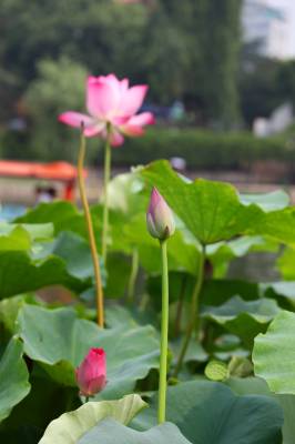7月17日,三峡宜昌云集路街头公园的荷花池人头攒动,双休的市民纷纷前往观赏美丽的荷花。