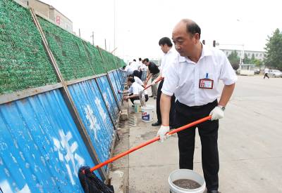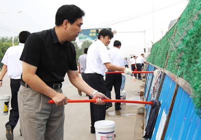 7月18日上午阳逻开发区的全体干部职工上街清洗挡板,用实际行动积极参与武汉的“城管革命”。