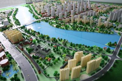 7月18日,随县县城建设指挥部一工作人员在新县城模型前介绍当前新城建设情况,随县新县城建设总体规划出炉。新县城规划面积为20.77平方公里。目前,该县城先后启动了行政中心办公楼、39个县直部门单位办公楼群、厉山旧城改造、烈山湖风光带等13类40多项重点工程建设,预计今年完成投资20亿元,年底新县城轮廓将初步显现。视界网杨文明摄