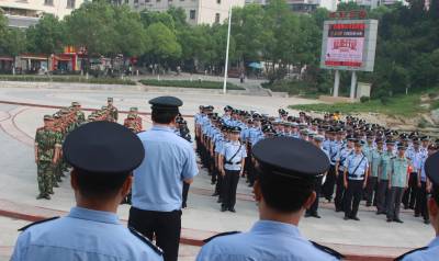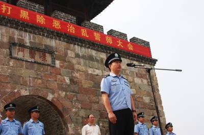 7月19日上午9时,在湖北省秭归县县城的景贤门前,秭归县公安局“打黑、除恶、治乱”专项行动的百余参战民警、武警集体誓师,共同许下“决战决胜”的坚定决心和信心。该局以“大走访”开门评警活动中“打捞”的民声民意为信号,在刑警、武警、缉毒警、网警、治安警中抽调精锐力量,组成追捕、侦察取证等八个专班,从7月下旬开始在全县开展为期半年的“打黑、除恶、治乱”专项治理活动,坚决遏制涉黑犯罪发展势头,坚决打击恶势力嚣张气焰,坚决整改群众反映强烈的突出治安乱点,以“公众安全感、满意率”的提升回应百姓对公安工作的新期待。