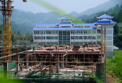 7月19日,宣恩县职业技术学校整体搬迁建设项目实训楼建设工地,工人正顶着酷暑高温抓紧施工。 近年来,宣恩县不断增加职业教育投入力度,促使县职业技术学校跨入省级重点职校行列。该县投资6000万元对县职业技术学校实施整体搬迁,力争营造优美职教环境,计划于今年搬入新校区,整体搬迁后的校区占地119亩,可容纳3600名学生,将实现规模扩大,标准提升,功能多样。 本报视界网 李以国 胡小军 摄