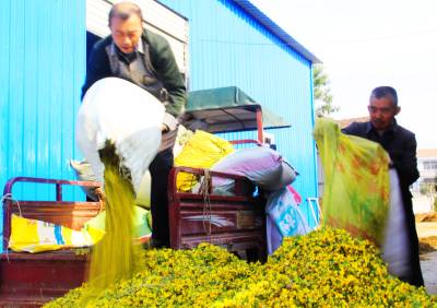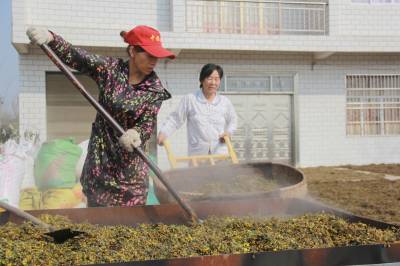 11月8日,安陆市王义贞镇柏杨村农民正在烘炒野菊花。王义贞镇山场面积广阔,土地、气候适宜野菊花的生长;眼下,正是野菊花盛开的时节,当地农民正抢抓时机采摘野菊花。 据了解,目前该镇采摘野菊花的农民每天逾千人,采摘总量达到25万公斤,农民因此增收200万元。 (视界网 王代金 摄)