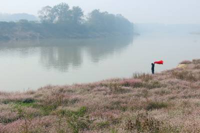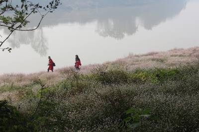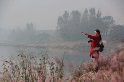 2017年11月8日,湖北云梦涢水国家湿地公园水蓼花开,红中泛白,白中有红,红白相间,河滩坡地,漫坡遍野,吸引游人观赏拍照。