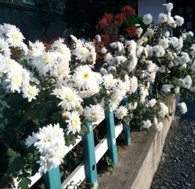 秋菊竞放图 11月8日,竹山县竹坪乡老庄小学、店坪小学,颜色各异的秋菊竞相绽放,将校园点缀得靓丽多姿。(视界网 张云朝 摄)