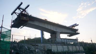 花湖国际机场铁路联络线首个连续梁0#块顺利浇筑(客户端采稿)