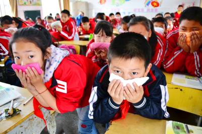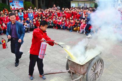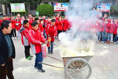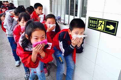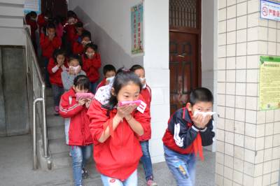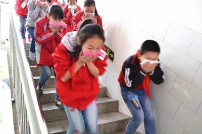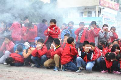 2017年11月9日,湖北省十堰市郧阳区柳陂镇中心小学1025名师生,用毛巾捂口鼻,低头、弯腰、有序举行了一场“119”消防演练活动。