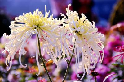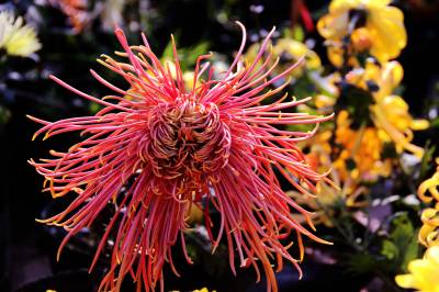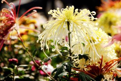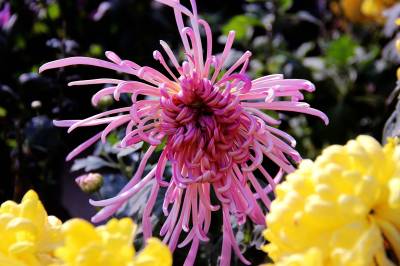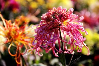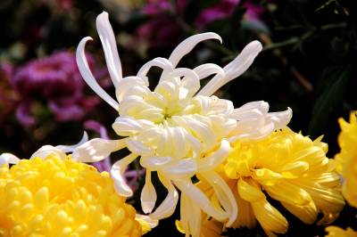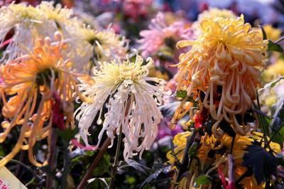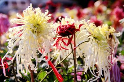 11月10日,在十堰市四方山生态公园里,150余种,5万余盆多姿多彩的菊花竞相开放。有黄色的光辉、大红袍;紫色的笑靥、歌舞升平;白色的白鹤银针、江天雪雁;红色的墨萍、金背大红。还有各类传统艺菊如悬崖菊、龙菊、塔菊、动物造型等,形态各异,五彩缤纷,美不胜收。