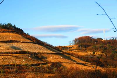 11月9日拍摄的鹤峰县中营镇韭菜坝村高原美景。该村平均海拔1300米,初冬时节,蓝天白云,山天相接,群山高原景物色彩斑斓,风景如画,美景醉人。