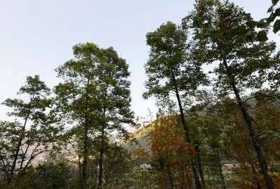 11月10日,在保康县五道峡国家级自然保护区拍摄的国家Ⅱ级重点保护野生植物喜树群落。