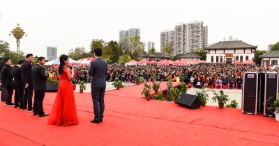 据湖北二乔文化发展有限公司总经理李丽娟,(嘉鱼县李丽娟木雕创始人),二乔家品牌创办人,非物质文化遗产木雕咸宁市代表性传承人介绍,此次活动共有武汉、嘉鱼等地的320多人报名参与,台上成对人数有8对。