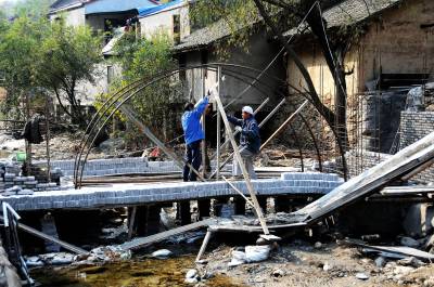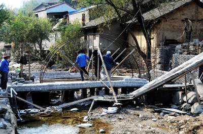 11月12日,在十堰市郧阳区叶大乡闵家村,施工人员在砌筑河道护岸和桥梁拓宽。眼下正值冬修水利时期,郧阳区水利部门积极开展农田水利基本建设、中小河流治理、河道淤泥清理等方面工作,当地群众踊跃参与冬修水利劳动,冬修水利建设正火热展开。