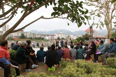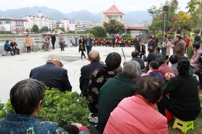 11月12日,房县城关镇老城社区文艺宣传队在城区西河广场演唱十九大精神鼓舞民心歌曲。当地宣讲党的十九大精神进农村、进社区贴近听众实际,将十九大主题、主线、主要成果和主要精神,编成歌曲、快板、三句半、小品等通俗易懂的文艺节目,由县、乡、村(社区)文艺宣传队巡回演出,让广大老百姓喜欢听、听得懂、记得住十九大精神的深刻内涵及精髓要义,凝聚大家的力量,奋力攻坚在精准扶贫的路上。