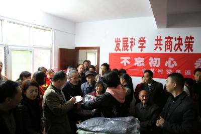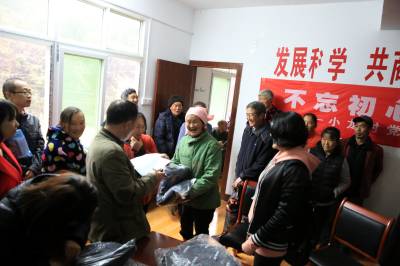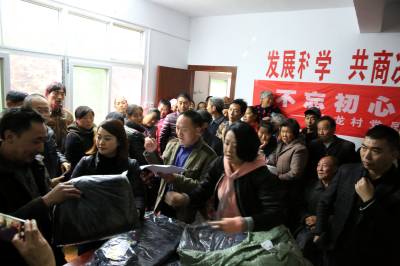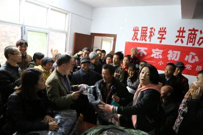 爱意谢意交织,远道而来的56件羽绒服发放到贫困户手中,绵绵情义温暖着这个偏远小山村。(本报视界网 陈开平 摄)