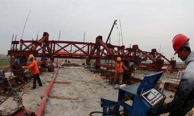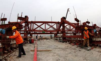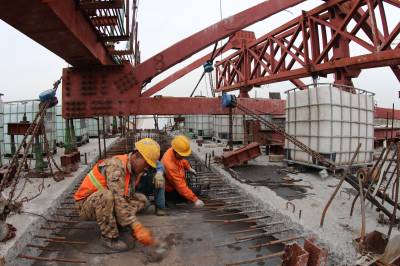 11月12日,中铁十一局安阳西北绕城高速项目部员工正在为跨南水北调大桥最后一段混凝土浇筑施工作准备。