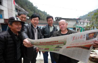 2017年11月13日,湖北省巴东县沿渡河镇泉口村党支部书记与企业负责人,帮助村民们领会十九大报告的精神。“十九大报告这些措施对广大农民都是利好,尤其说的精准扶贫的事,让我们个个喜上眉梢……”让巴东县沿渡河镇泉口村的贫困户们听得津津有味。