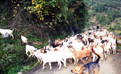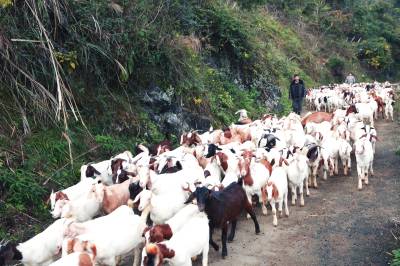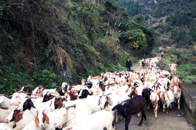 夫妻羊倌二人“赚” 15日,向传锡唐天翠夫妇正赶着羊群上山放牧。 今年60岁的向传锡,家住巴东县官渡口镇楠木园村,是首批三峡移民对象。 2013年,他看好当地山林适宜养殖山羊,申请注册“巴东县金易山羊养殖专业合作社”, 投资30多万元建羊场,购进波尔羊与本地羊,夫妇二人当上了羊倌。现存栏400多只,今年可出栏80多只,收入8万余元。(视界网 穆世祝 摄) 姓名:穆世祝;联系电话:15335850858;详址:巴东县官渡口镇中心学校