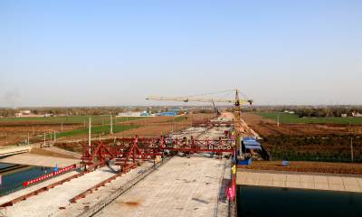 11月15日,中铁十一局承建的河南安阳绕城高速跨南水北调大桥提前2个月合龙。
