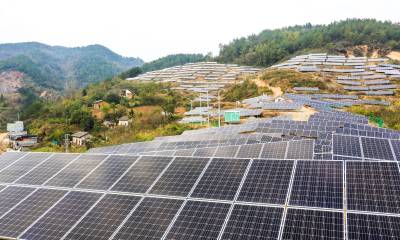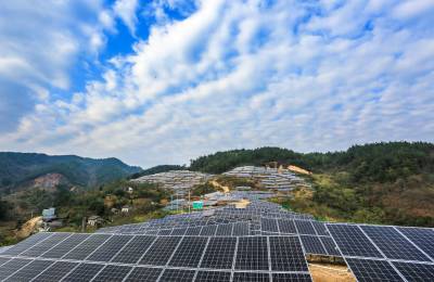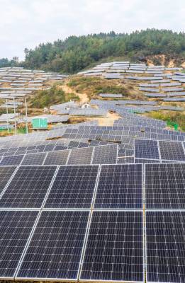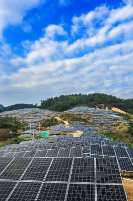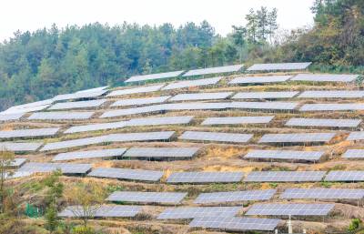 2017年11月15日在竹溪县城关镇新胜村拍摄的光伏产业助增收脱贫的一角。 近年来,随着新科技、新型光伏发电上市,竹溪县发挥可利用山场优势,积极推进光伏发电建设,把光伏发展作为扶贫攻坚项目之一做强抓实,把片片荒山草地变为助推贫困人民增收脱贫的光伏电厂。阳光下,一片片银光闪烁的光伏电板既助人民增收,又为乡村旅游观光增加看点(视界网温大树摄)。