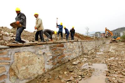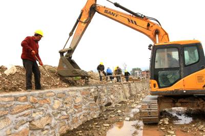 11月18日,施工人员正在房县军店镇除险加固三溪沟河河堤,完成加固堤防工程3300米。前不久,房县发生了60年代以来最大的一场秋汛,水利工程毁损前所未有。通过今冬明春农田水利建设,当地补齐农村小河堤、小渠道、小水库、小拦水坝、小饮水工程等涉及农村发展和农民切身利益的“五小”水利工程,造福受益的40多万农民。目前,完成建设农村饮水安全工程65座、加固河堤8830米、维修渠道1500米,正在除险水库8座。