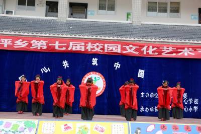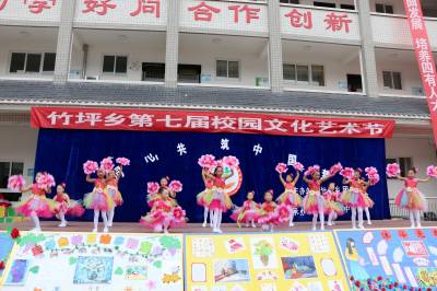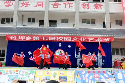 11月22日,竹山县竹坪乡以“宣传十九大,共筑中国梦”为主题的第七届校园文化艺术节,在该乡竹坪小学隆重举行。活动现场人头攒动、欢声笑语、乐声悠扬、热闹非凡。来自该乡9所中小学幼儿园的师生,共计400余人,同台汇演,共演出文艺节目31个。师生用文艺汇演的形式,深入浅出地宣讲了党的十九大精神和社会主义核心价值观的内涵,吸引了许多学生家长前来观看。