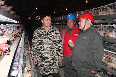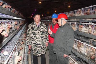 护航蛋鸡产业 11月22日,谷城县供电公司庙滩供电所员工在庙滩镇在魏家山蛋鸡养殖基地了解养鸡大户龚文先的供用电情况。该公司为确保该基地40家养殖大户、100万只蛋鸡用电无忧,乐享舒心电,为其更换200千伏变压器1台,改造高低压线路3千米,24小时提供抢修服务。(视界网马明刚摄)