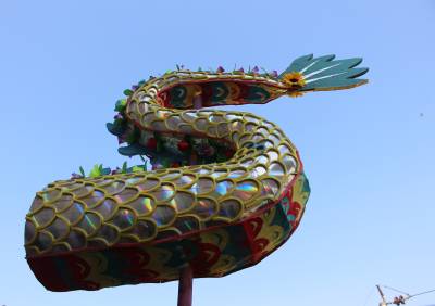 2017年11月27日,云梦县伍洛镇皮影馆表演皮影戏的老艺人刘祖银,利用空闲时间在简陋、狭窄的空间制作国家级非物质文化遗产保护名录“三节龙”。由于空间太小,门框太窄,龙头难以拿出来,刘师傅只能拿出龙尾展示一下。