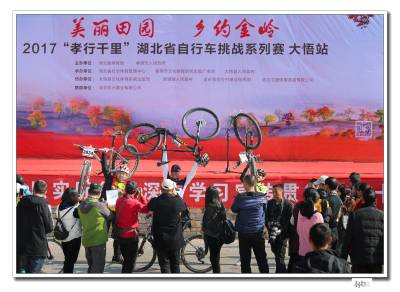 为推动湖北自行车运动的开展,倡导全民健身、低碳环保意识,大力宣传地方经济、人文生态建设,11月26日,由省体育局、市人民政府主办的2017年“孝行千里”湖北省自行车挑战系列赛大悟站在大悟县新城镇金岭村举办。