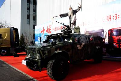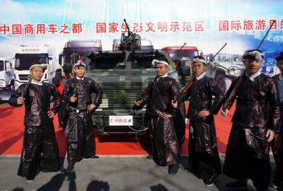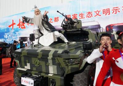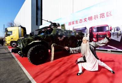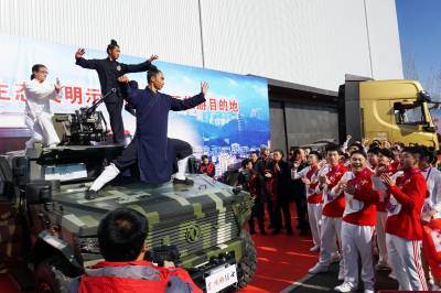 这次东风商用车与东风猛士军车进京展示,是为十堰市参加"魅力中国城"第三场半决赛助威鼓劲和招商安排的独家展位,但东风猛士军车成为车站中的一颗明星,观众,演员、导演组、知名学者纷纷前来观看并与之合影,许多演员穿上军服戴上钢盔与之合影,现场一下热闹起来。这时,贵州省黔东南啦啦队与300多演员也来到现场与十堰市啦啦队现场PK,歌声和叫喊声连成一片,扛着猎枪的苗族小伙子们与现代化的东风猛士军车的合影给人一种穿越时空的现场之感,身着节日民族服饰的黔东南苗家姑娘们的现场高歌,更让东风猛士军车的迷彩色与之相融。上世纪六十年代落户十堰市山区的东风汽车己成为世界级的名车,座落在十堰市山区境内的武当山更是世界历史文化遗产,这次武当山功夫团和"三丰"武术学校的弟子们也来参加"魅力中国城"第三场半决赛的演出活动,他们也在车展现场纷纷亮相,让武当功夫与现代东风猛士军车得到充分展示形成完美结合,让现场观众的叫喊声和欢呼声连成一片,一次只有两台东风重卡和一辆东风猛士军车的小展示确让观众如此颠狂,我还是第一次领略东风猛士军车的如此魅力。