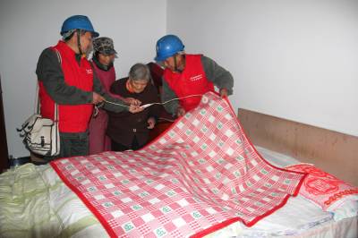 真心服务让老人安全度冬 11月30日,革命老区谷城县供电公司北河供电所党员服务队队员在城关镇君临城北小区向老人讲解电热毯的正确使用常识。入冬后,各类取暖电器纷纷派上用场。该公司情系空巢、留守老人,9支党员服务队队员,主动深入老人家中,向他们宣讲各类电器的正确保管、使用方法,让老人们备感温暖。(视界网马明刚摄)