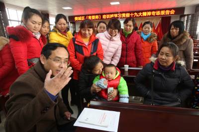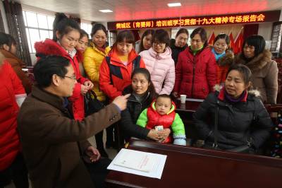 11月30日,在樊城区田山村举办的太平店镇第四期育婴师培训班上,湖北文理学院聂军应邀宣讲党的十九大精神。讲座结束后,聂军还重点就与农村有关的乡村振兴、精准扶贫进行详细的解读。