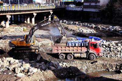 元月8日,在十堰市茅箭区马家河武当路街办段河道综合治理工程施工现场,多台大型设备正在开展清淤、平整河道等工作。据了解,马家河武当路街办段河道综合治理工程起于马家河村竹园小区,止于武当路公路桥,全长为2.2KM,工程总投资3032万元。按照相关要求,施工方会在清除淤泥垃圾、开挖河槽、改造堤防、新建挡墙的同时,在马家河河道两畔采用生态防护措施,增设绿化、景观节点、自行车道、景观基础配套设施等,待工程竣工之后,河道两畔将成为景观展示带和公共休闲带。整个工程预计在2018年10月底完工。 视界网薛乐生摄