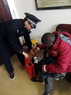 1月4日晚23时许,武汉铁路公安局潢川车站派出所民警孙斐在站区巡视,发现一位老人手握编织袋躺在候车室外的台阶上昏昏睡去,身上已经落了不少积雪。民警见老人衣衫单薄,连忙将其唤醒带至民警值班室取暖,并询问情况。原来该老人为张某,1962年生人,家住河南省潢川县踅孜镇,身患眼疾和腿疾,常年独自一人居住。此前张某曾在广州流浪拾荒,元旦后老人乘火车回老家,却没想到正赶上大雪,因付不起打车费用,便想在火车站将就一晚,等雪停了再想办法回家。