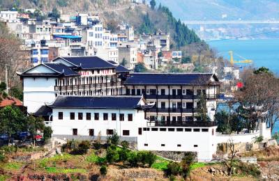 1月9日,已竣工建成的巴东县官渡口镇东坡小学特色民居光彩照人。 东坡社区位于长江巫峡口,素有“入川咽喉”之称。为了促进原生态旅游大发展,财政增税,居民增收,巴东县投入2300万元,自去年7月20日以来,对现有的135栋民居、4栋单位房屋实施改造,还将建设停车场、广场、绿化亮化工程、步行街、自行车体验道、QQ农场、土特产聚散地等。(视界网 梁勇 摄)13986846069