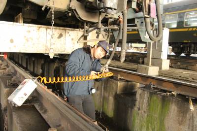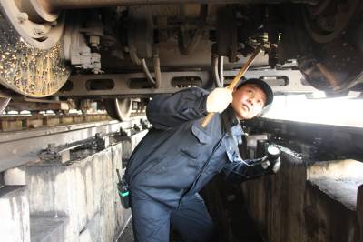 1月10日,武昌客车车辆段襄阳运用车间的铁路工人正在对开往广州的K934列车进行全面体检,2018年春运即将开始,该段重点加强北上广深等地列车的维修力度,确保旅客春运出行安全有序。(视界网 王世龙摄)