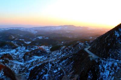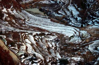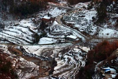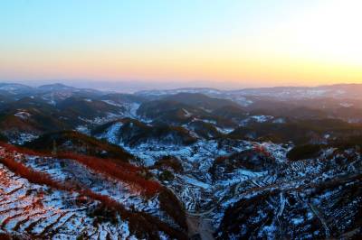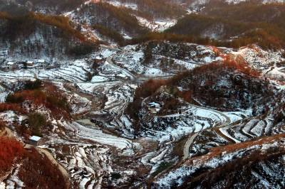 1月9日,在湖北省十堰市郧阳区大柳乡拍摄的雪后山乡美景。上周湖北郧阳迎来入冬以来最大的一场降雪,雪后初晴,山乡处处银装素裹,山峦梯田被白雪装扮得如诗如画。(视界网 秦秋红 摄)