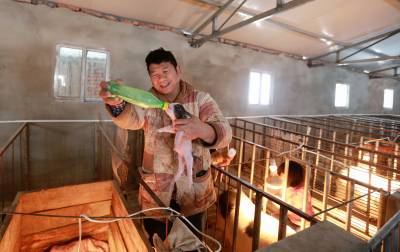 1月7日,湖北省竹山县擂鼓镇西河村“世外桃园”种植养殖农民专业合作社理事长赵安波,正在安装有保温板、保温灯的猪舍里精心照料巴马香猪仔猪。为防范降低低温雨雪冰冻灾害,该县及时组织农业、畜牧、林业等技术专家根据实际情况,及早制定技术方案,深入生产一线指导农民做好防寒抗冻措施。对油菜、蔬菜、林果、茶叶、畜禽、水产等规模产业,采取蹲点包片的形式,指导农民科学抗灾。
