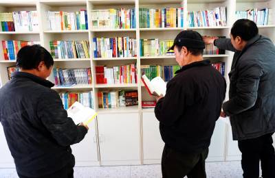 2018年1月10日,大雪后的十堰市郧阳区大柳乡金堂村的村民们正在"中心农家书屋"内看书学习。为加快扶智脱贫工程,郧阳区新华书店投资10万余元为金堂村建起"中心农家书屋"、阅览室、体育健身器材和音响设备。截止2017年底郧阳区新华书店共投资90万余元为10个村建起"中心农家书屋"。 视界网周家山 摄