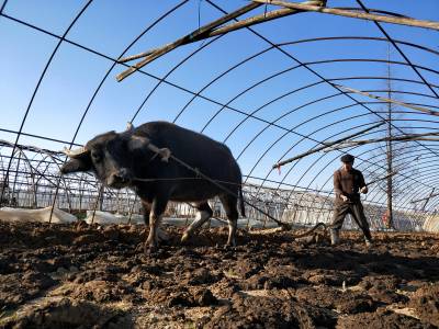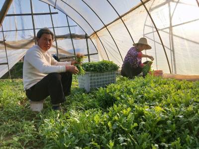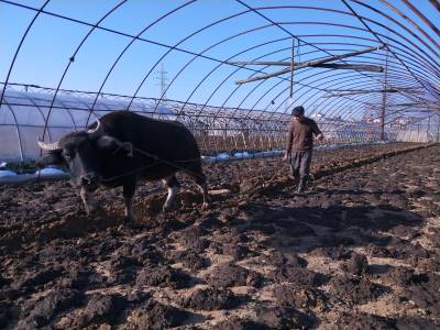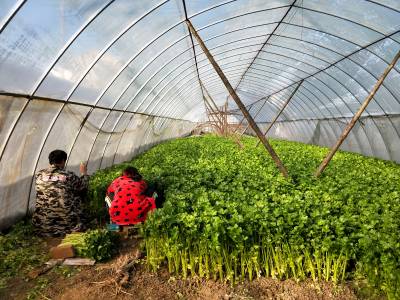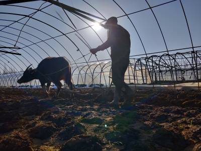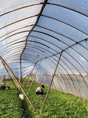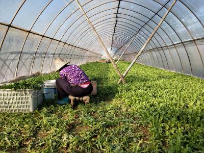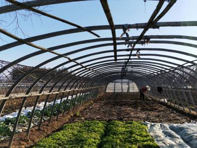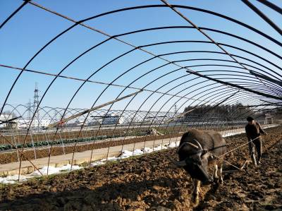 2018年1月10日,云梦城关镇詹桥村菜农大雪后忙着在塑料大棚中J蔬菜加强蔬菜生产管理。有的菜农在大棚中收获蔬菜,有的在大棚菜地施肥,有的加强菜地耕整,有的在大棚犁地为下步安苗做准备。云梦县是湖北省蔬菜生产大县。3日、4日的大雪将部分蔬菜大棚压垮,坍塌了部分蔬菜大棚。连日来,云梦天气晴好,广大菜农忙着灾后自救,铲除积雪,整理大棚。一部分菜农忙着收获大棚中的芹菜、茼蒿、莴苣等青菜,供应雪后市场。
