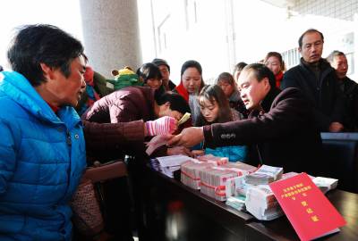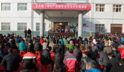 1月11日,在湖北省竹山县宝丰镇下坝村产权股份合作社分红现场会上,为入社的下坝村村民发放了24.57万元红利。2014年底,对集体资产进行全面清产核资后,下坝村将殡仪服务站、集体公益林和闲置的学校、原村委会房产等经营性和资源性资产转换成股份资本,注册成立产权股份制合作社,合作社注册资金540.8万元,680户、2890人入社。合作社配置集体股份和个人股份,集体股份占资产净值的40%,其所有权属于集体经济组织成员共同所有,个人股占60%,折股量化个人股权共4467.9股,个人股包括基本股、老龄股、岗位股和失地股。村集体产权股份合作社的成立,让村民变成了实实在在的股东,能从集体资产中获利,人人都关心集体资产的管理与经营。