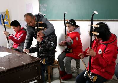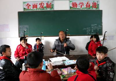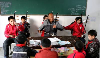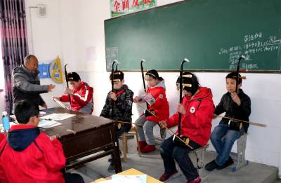 琴声悠扬满校园 1月11日下午,在竹山县竹坪乡中心小学的校园里,一群爱好二胡的学生,在退休教师乔华堂的指导下,弹奏《歌唱祖国》,琴声悠扬,悦耳动听,不仅让学生学习了二胡的弹奏方法,而且让学生受到了热爱祖国的思想熏陶。 针对该校目前在职教师中,会使用乐器演奏的教师缺少的实际,年满64岁的退休教师乔华堂主动要求,免费为该校学生传授二胡、笛子、口琴、电子琴等乐器的弹奏方法,发挥余热,让夕阳红似火。(视界网 张云朝 摄 13733530899)